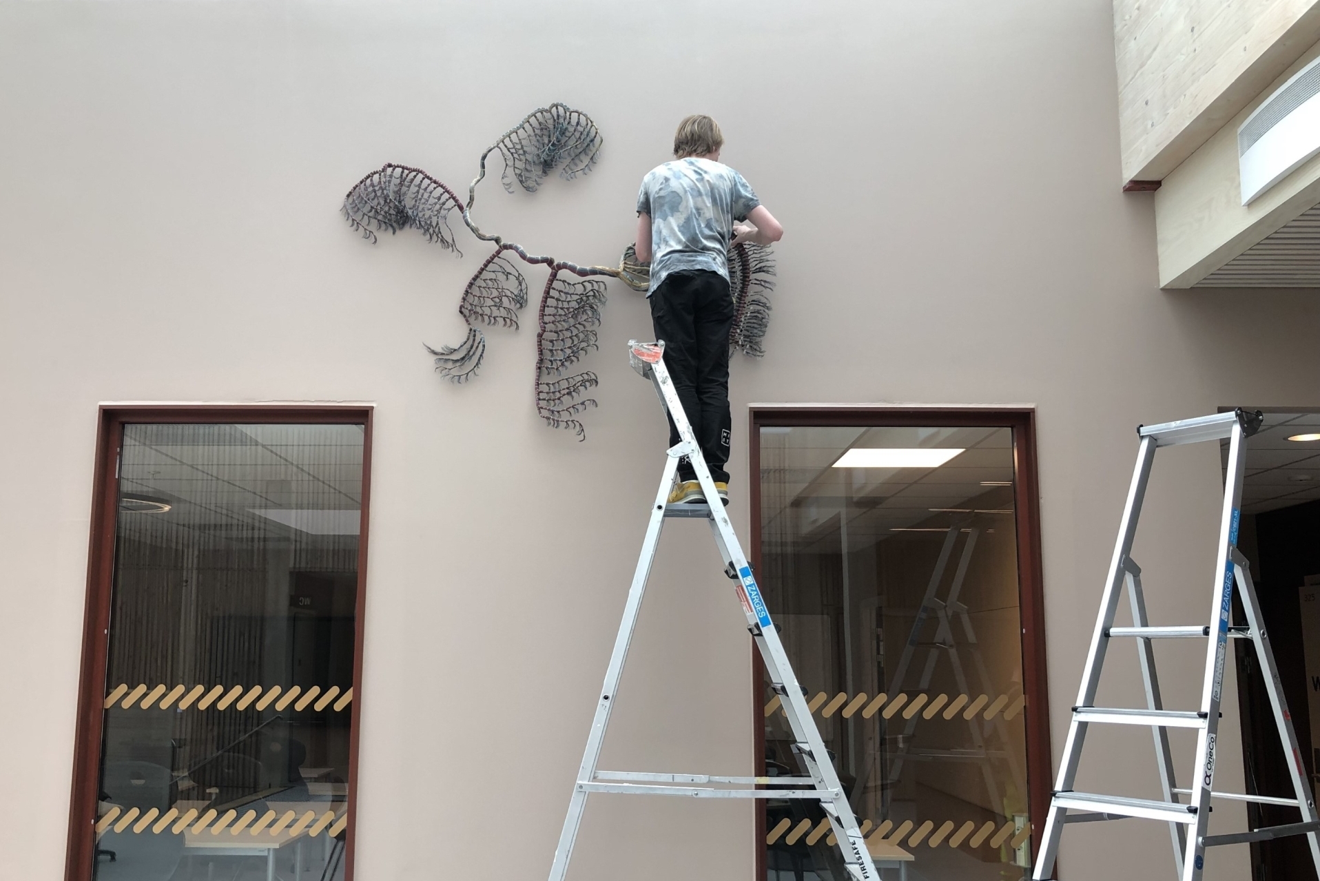 Ferdigstilt utsmykking i Kvam vgs des. 2025. Vestland fylkeskommune